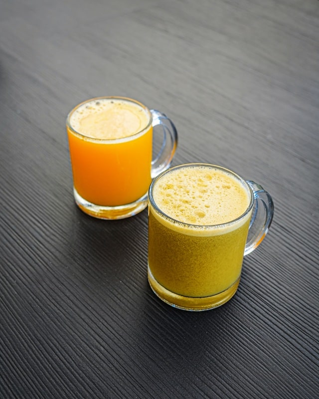 Three pancakes filled with cream cheese, topped with honey apricot. Three filled with cream cheese, topped with blueberry coulis. Served with fresh mango, strawberries and blueberries.